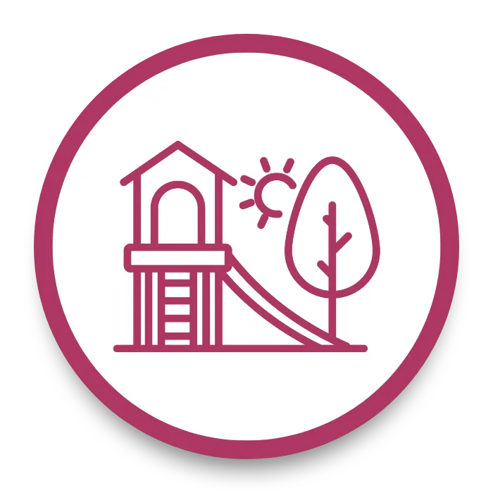 Outside play areas where children enjoy spacious playgrounds with room to climb, run, and make friends.